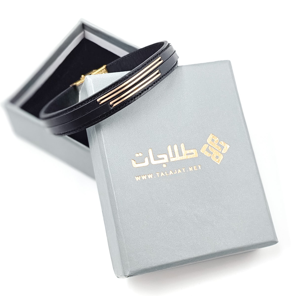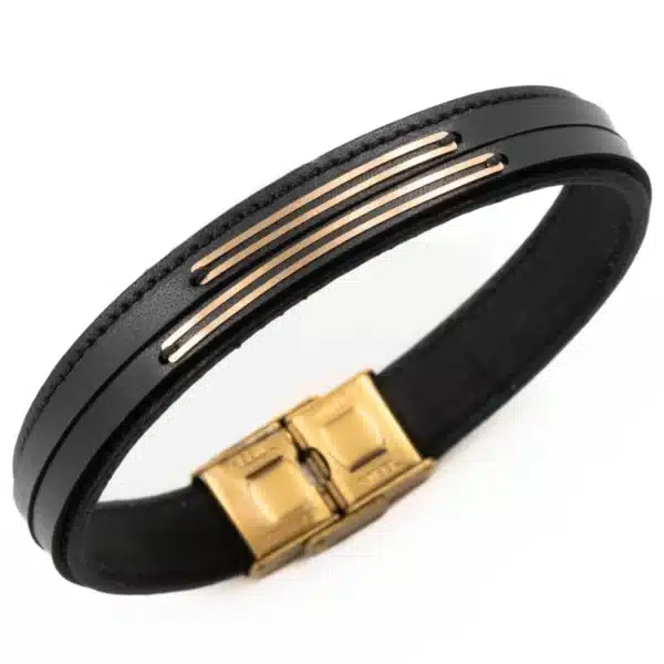 دستبند مردانه طلا و چرم m111